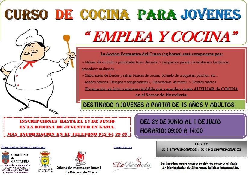 Curso Formativo "Emplea y Cocina" para jóvenes a partir de 16 años y adultos.
