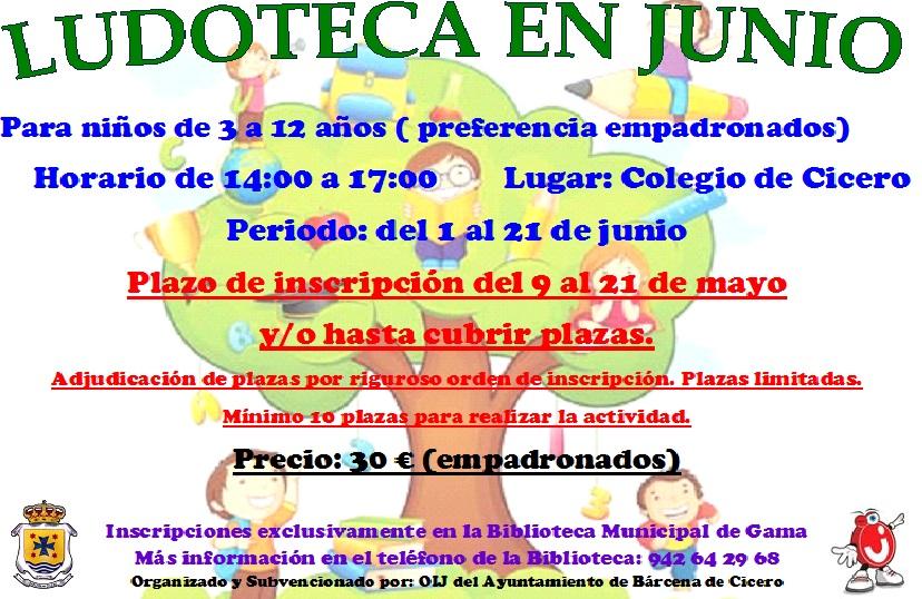 Desde el Ayuntamiento de Bárcena de Cicero, Concejalía de Educación, os facilitamos la información relativa a la Ludoteca para el mes de Junio solicitada desde el Colegio “Flavio San Román” de Cicero, para ofertar actividades en el periodo del 1 a ...
