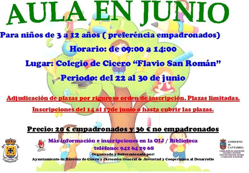 Desde el Ayuntamiento de Bárcena de Cicero junto con la Oficina de Información Juvenil se informa de la actividad "Aula de Junio" para el periodo no lectivo comprendido entre el 22 y el 30 de junio.