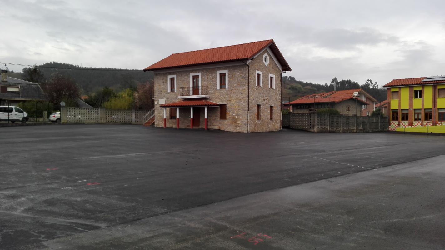 Aprovechando las vacaciones escolares el Ayuntamiento de Barcena de Cicero a asfaltado el patio del Colegio Flavio San Román y el parking de la bolera proximo al mismo.