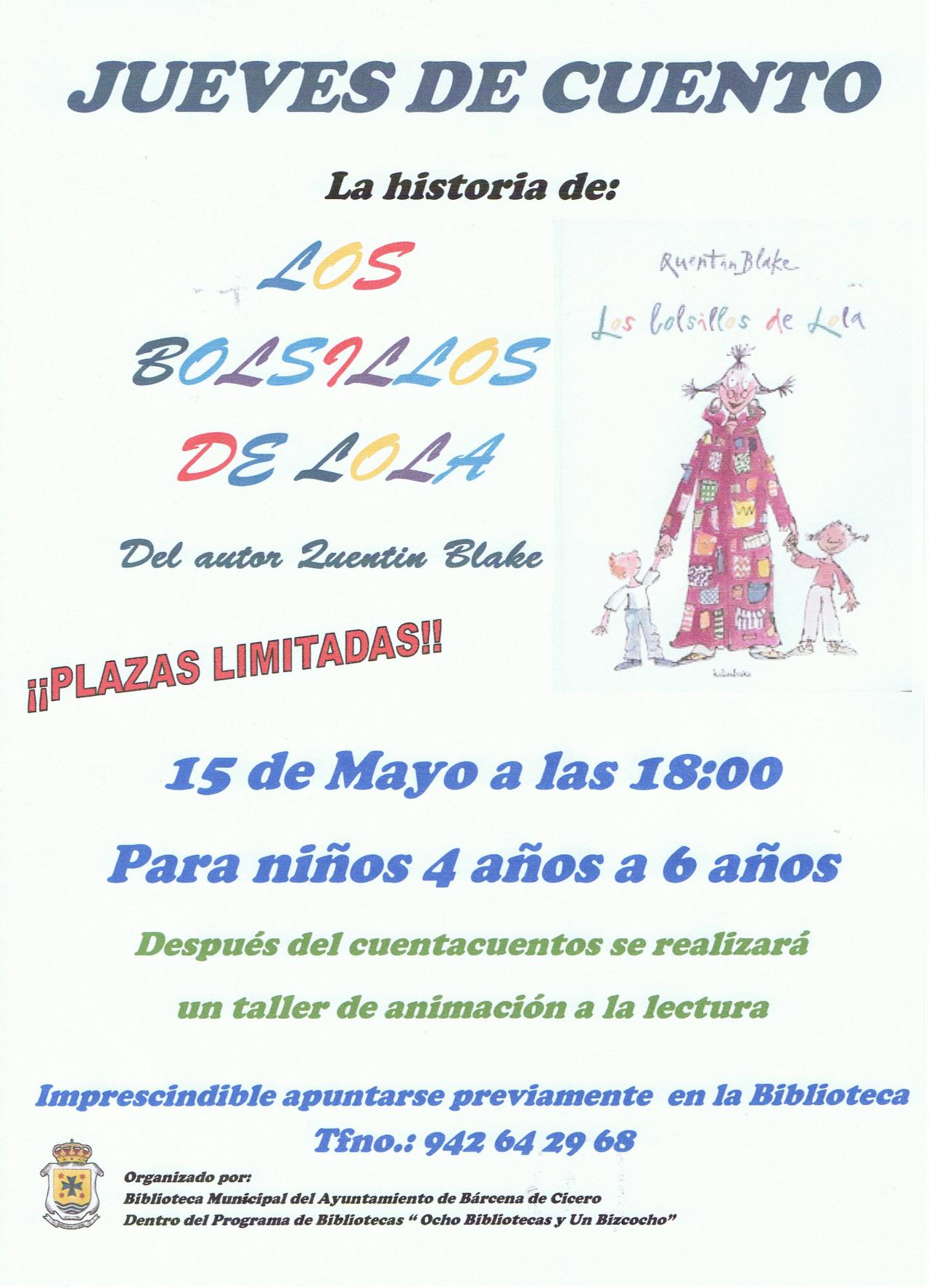 Durante este mes de mayo, dentro del Programa de Animación lectora "Ocho Bibliotecas y Un Bizcocho" nuestro cuento del mes es "Los bolsillos de Lola" del autor Quentin Blake.