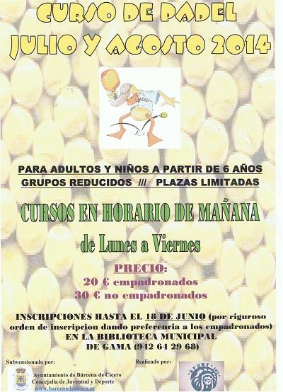 Desde la Concejalía de Juventud y Deporte del Ayuntamiento de Bárcena de Cicero se ha organizado un "Curso de Padel" para los meses de verano.