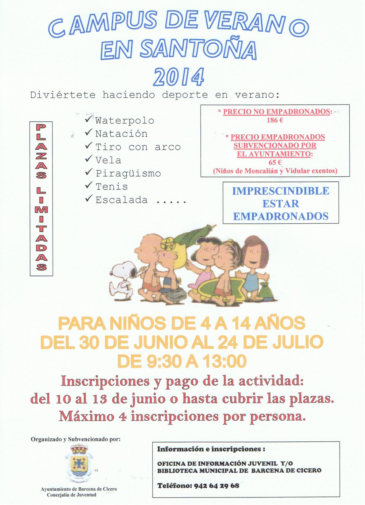 Un año más desde el Ayuntamiento de Bárcena de Cicero junto con la Oficina de Información Juvenil, se ha organizado el Campus de Verano con actividades deportivas, principalmente acuáticas: vela, piragüismo, natación, tiro con arco, escuela medioambient ...